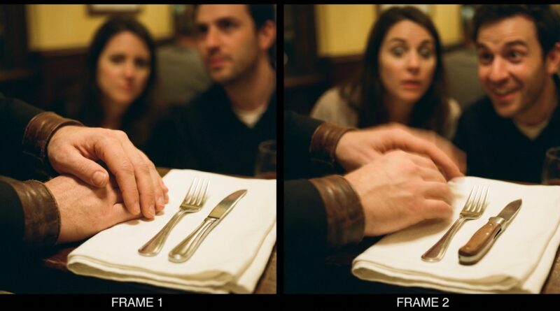 Let them register “knife” before anything happens. Not a flash. A beat.